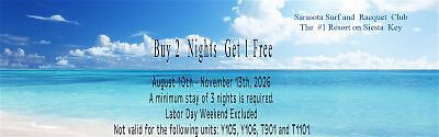 Rules & Restrictions: Some restrictions apply. Excludes Labor Day Weekend. A minimum stay of 3 nights is required. Not valid on monthly stays. Not valid for the following units: Y105, Y106, T901 and T1101.