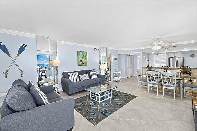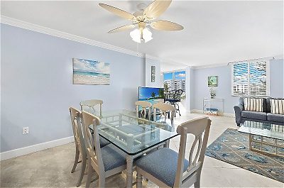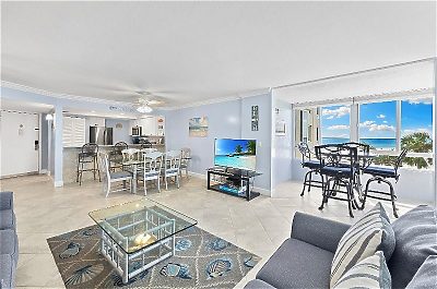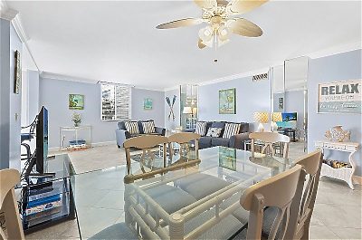 Y0408 is a non-smoking unit in the Y building, with an open concept living and dining room area and enclosed lanai.