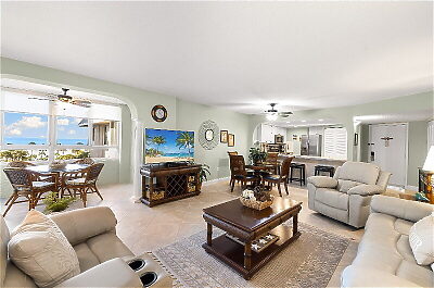 W0502 is a non-smoking unit in the W building, with an open concept living and dining room that that extends out to the unit's enclosed lanai.