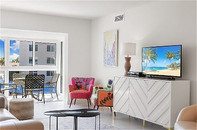C0308 is a non-smoking unit in the C building, with an open concept living and dining room area and a separate enclosed lanai.