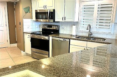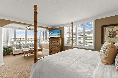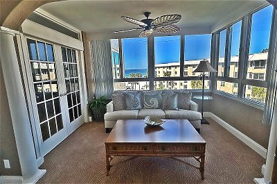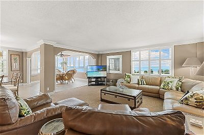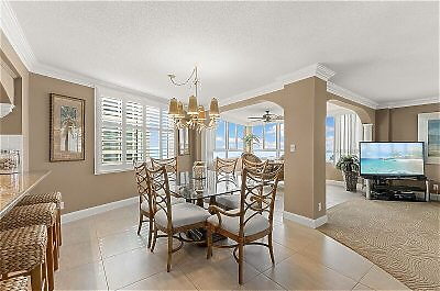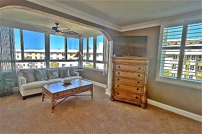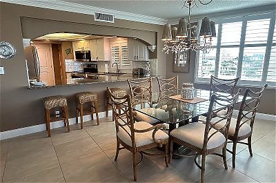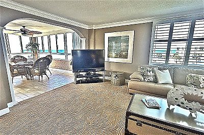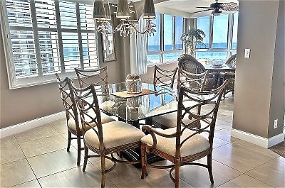 T0501 is a non-smoking unit in the Tower building, with an open concept living and dining room that extends out to the unit's enclosed lanai.