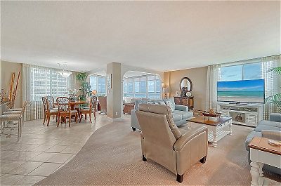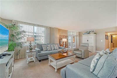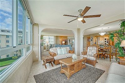 T0401 is a non-smoking unit in the Tower building, with an open concept living and dining room area that extends out to the unit's enclosed lanai.
