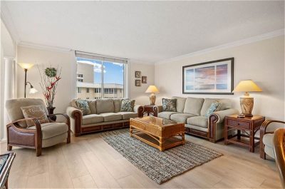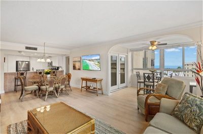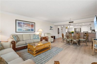 T0502 is a non-smoking unit in the Tower building, with an open concept living and dining room that that extends out to the unit's enclosed lanai.
