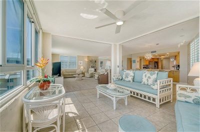 T0701 is a non-smoking unit in the Tower building, with an open concept living and dining room that extends out to the unit's enclosed lanai.