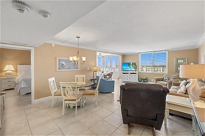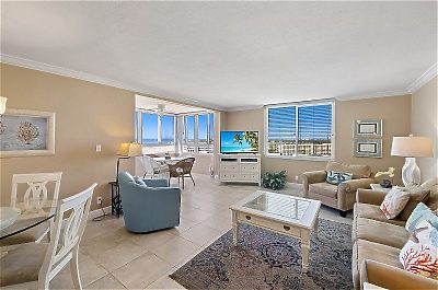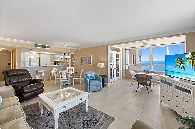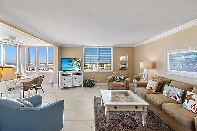 T1202 is a non-smoking unit in the Tower building, with an open concept living and dining room that that extends out to the unit's enclosed lanai.